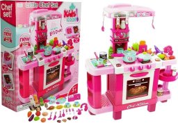 Ten dużych rozmiarów zestaw kuchenny to prawdziwy rarytas dla każdej młodocianej pani domu. Utrzymane w różowych kolorach mebelki i sprzęt AGD jasno daje do zrozumienia, kto rządzi w kuchni! Gotowanie, pieczenie, smażenie, krojenie, mieszanie... Cała paleta możliwości!