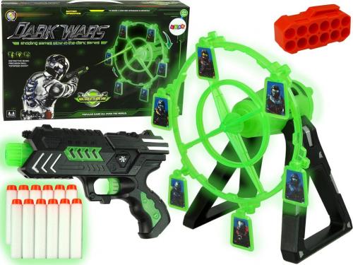 Gra Zręcznościowa Obrotowa Tarcza Świecąca W Ciemności Pistolet na StrzałkiKarabin to zabawka, która znajduje się w kolekcji niemal każdego małego chłopca. Idealna zabawa na świeżym powietrzu, w domu, a teraz i w ciemności. Broń, która posiada spektakular