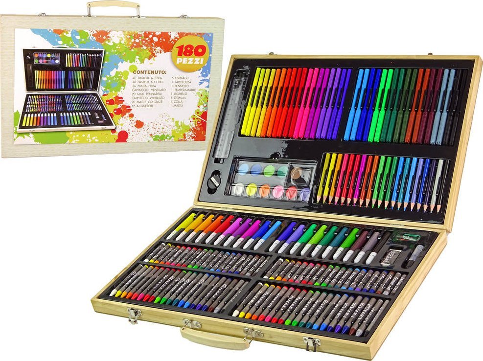 Zestaw Artystyczny Do Malowania Drewniana Walizka 180 Elementów