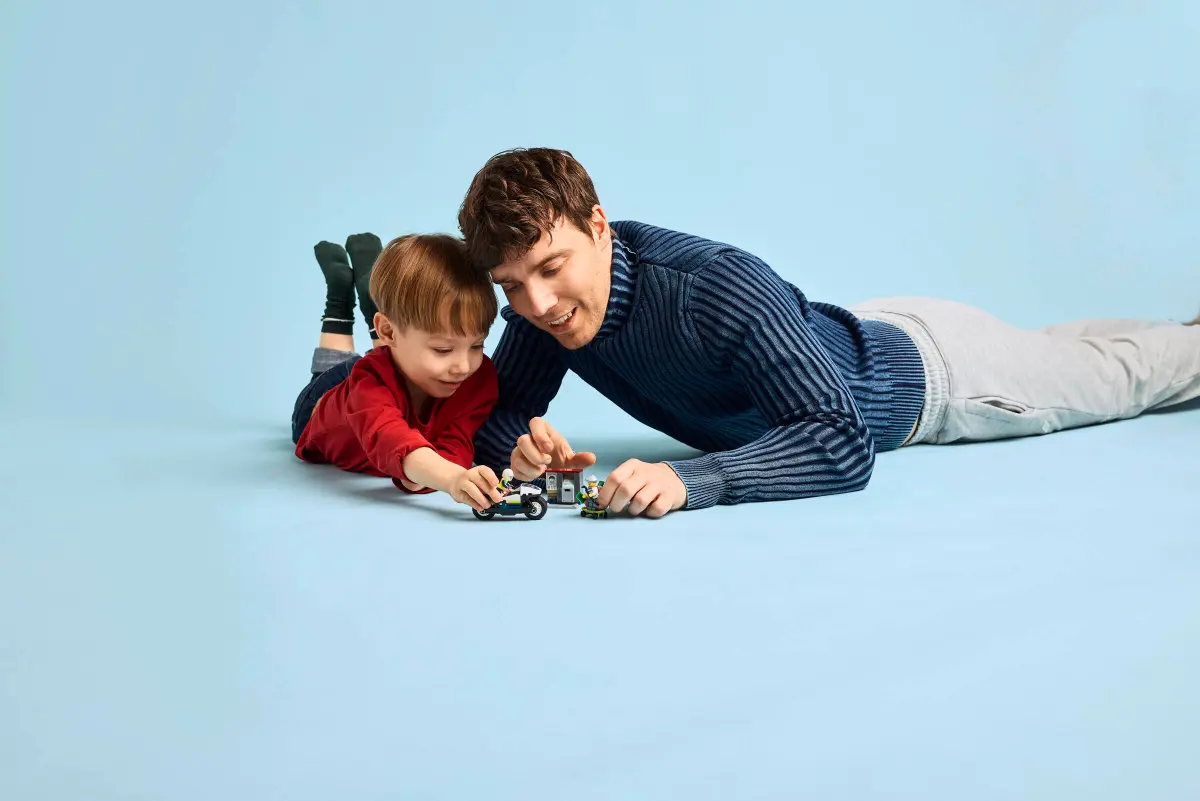 Łatwy do zbudowania pojazd policyjny zawiera klocek startowy LEGO i ilustrowane instrukcje. Dzieci mogą też rozwinąć swoją kreatywność dzięki cyfrowym instrukcjom w aplikacji LEGO Builder. Mogą w niej przybliżać i obracać modele w 3D, śledzić postępy w budowaniu oraz odkrywać i zapisywać inne zestawy.