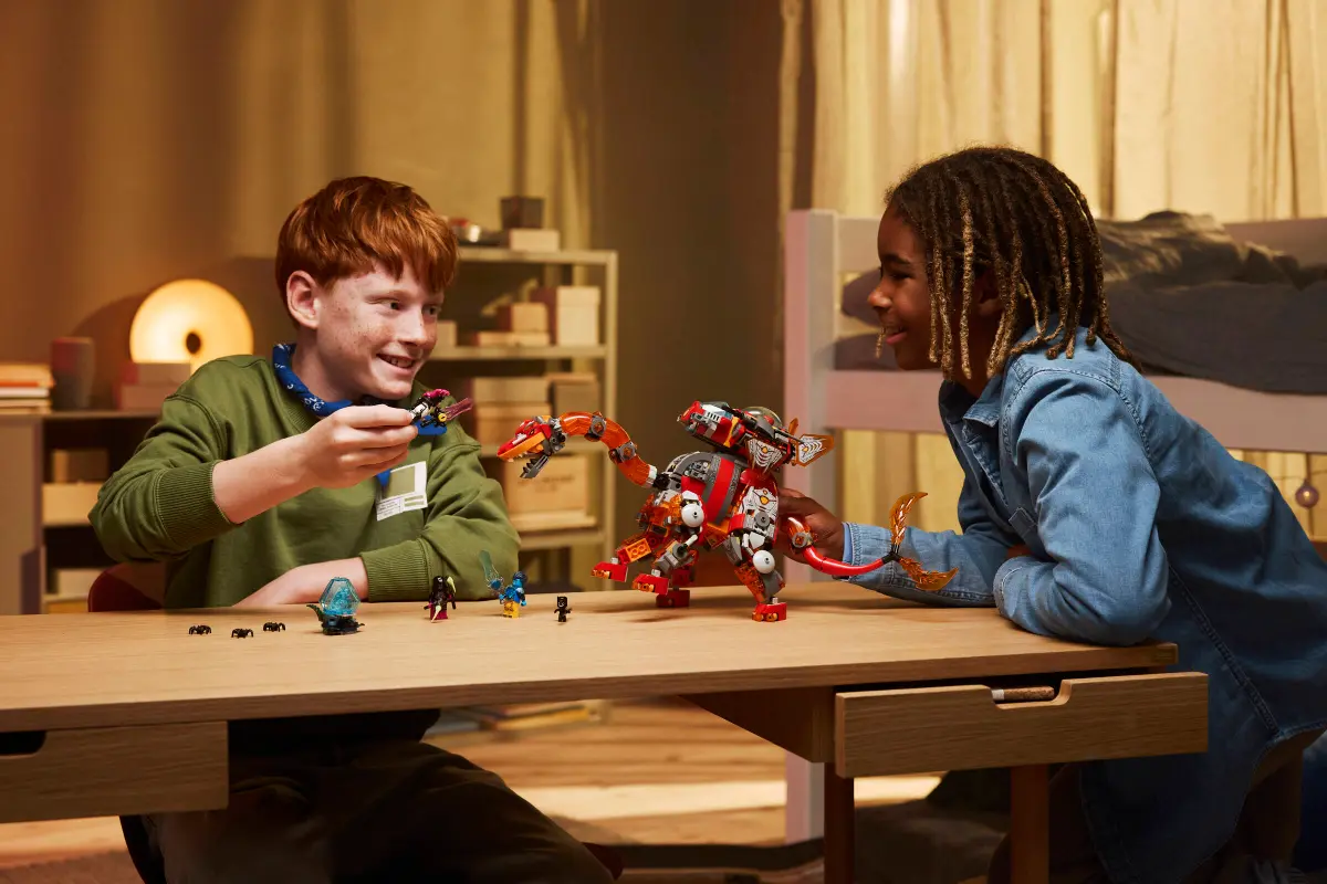 Pobudź wyobraźnię dzieci dzięki zestawowi konstrukcyjnemu LEGO® DREAMZzz™ Dinostatek kosmiczny (71514) dla chłopców i dziewczynek w wieku od dziewięciu lat. Dzięki dwóm opcjom budowania dzieci mogą stworzyć groźnego brontozaura lub gotowego do walki stegozaura. Brontozaur to potężny dinozaur powstały z magmy, wyposażony w ogromny podwójny ogon (gotowy zmieść wszystko na swojej drodze) oraz odczepiany statek kosmiczny, natomiast stegozaur to bestia bojowa z wzmocnioną zbroją, płonącym ogonem w kształcie maczugi i oddzielnym statkiem kosmicznym. Zestaw konstrukcyjny z dinozaurami zawiera również cztery minifigurki, które zachęcają do zabawy w odgrywanie ról, oraz kolekcjonerskie akcesoria w postaci mieczy do walki z trzema pająkami, a także diamentowe jajo oraz Pomarańczowego i Niebieskiego Skarbeńka. Ten fantastyczny zestaw dla chłopców i dziewczynek to idealny prezent na urodziny i inne okazje. Zawiera instrukcje budowania oparte na fabule, które ułatwiają dzieciom zanurzenie się w przygodzie. Są one również dostępne w wersji cyfrowej w aplikacji LEGO Builder. Zestaw składa się z 1007 elementów.