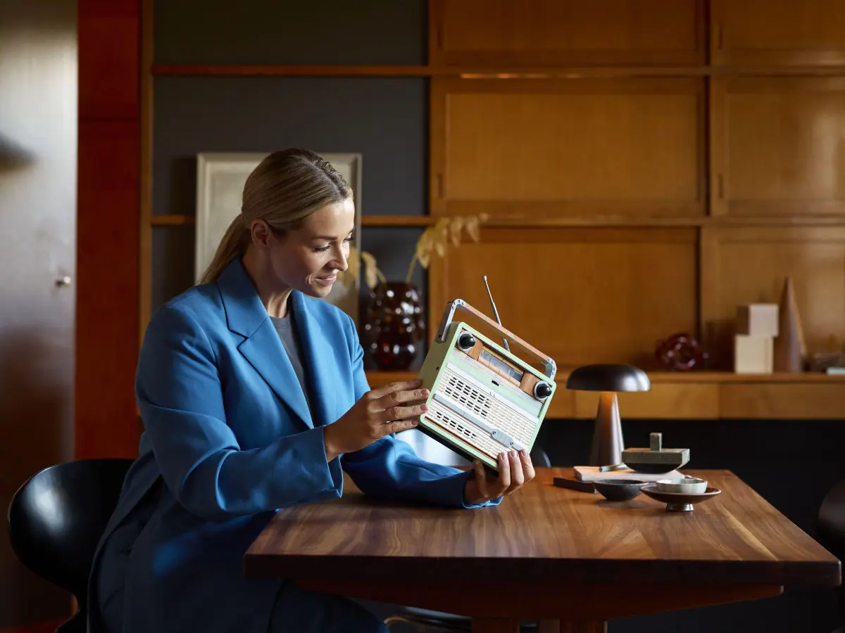 Weź udział we wciągającym projekcie dzięki zestawowi LEGO® Icons Radio w stylu retro (10334). Stwórz replikę radia z lat siedemdziesiątych XX wieku ze składanym uchwytem i anteną, klasycznymi pokrętłami zasilania i strojenia oraz suwakiem częstotliwości. Obracaj pokrętłami, aby emitować sygnały strojenia i fragmenty muzyki. Umieść smartfon w tylnej komorze, aby cieszyć się ulubionymi utworami, wprowadzając jednocześnie fajny klimat retro do domu lub biura.