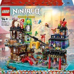 Dzięki zestawowi do budowania Rynek miejski NINJAGO® (71799) dzieci w wieku od 14 lat i kolekcjonerzy LEGO® mogą poczuć wyjątkowe emocje i poznać tętniące życiem miejsce, w którym mieszkają i bawią się ninja. Świat największego w historii modelu NINJAGO obejmuje cztery piętra sklepów, restauracji, biur i apartamentów, a także kolejkę linową, windę, łódź, most oraz spłukiwaną toaletę.