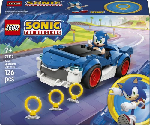 Szybka akcja i wyścigi samochodowe czekają na dzieci w wieku od siedmiu lat w zestawie LEGO® Sonic the Hedgehog™ Sonic: Speedster Lightning (77117). Chłopcy, dziewczynki i fani gier mogą odgrywać wyścigi, zupełnie jak w grze „Sonic Racing: CrossWorlds”, oraz zbierać trzy złote pierścienie z pomocą minifigurki Sonica z zawadiackim uśmiechem. Niebiesko-biały interaktywny pojazd z zestawu LEGO ma szerokie opony z czerwonymi obręczami i otwieraną maskę, pod którą kryje się Szmaragd Chaosu. Ten kolekcjonerski zestaw z Sonikiem to świetny prezent na urodziny lub inną okazję dla graczy. Dodaj go do innych zestawów LEGO Sonic the Hedgehog™ (sprzedawanych osobno), aby poszerzyć możliwości zabawy i przygód. Dzieci nabiorą pewności siebie w budowaniu dzięki aplikacji LEGO Builder, w której można powiększać i obracać model, przeglądać instrukcje w 3D, a także zapisywać i śledzić swoje postępy. Zestaw składa się ze 126 elementów.
