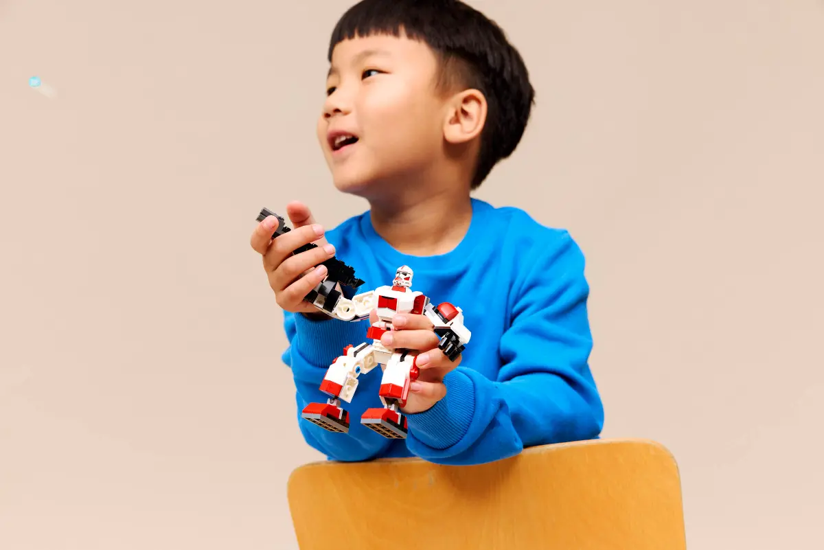 Zapoznaj dzieci z ekscytującym światem LEGO® Star Wars™ dzięki zestawowi Mech klona Shock Troopera (75448). To wspaniały upominek dla chłopców, dziewczynek i fanów Gwiezdnych Wojen w wieku od sześciu lat. Ta ruchoma figurka mecha została zaprojektowana tak, aby można ją było łatwo złożyć i szybko rozpocząć zabawę. Umieść minfigurkę klona Shock Troopera w kokpicie i przypnij jego karabin blasterowy z tyłu mecha. Ręce i nogi można ustawiać w różnych pozach bojowych. Umieść duży karabin blasterowy w dłoniach mecha i aktywuj jego miotacz klocków. Dzięki pancerzowi w charakterystycznych czerwono-białych barwach klonów Shock Trooperów mech wygląda fajnie również jako ozdoba w przerwie między kolejnymi misjami. Ten zestaw klocków LEGO z mechem należy do kolekcjonerskiej serii mechów LEGO Star Wars (sprzedawanych osobno). Dzieci mogą budować z pewnością siebie, korzystając z aplikacji LEGO Builder, w której można powiększać modele, obracać je w 3D i śledzić postępy dzięki prostym instrukcjom cyfrowym. Zestaw składa się ze 151 elementów.