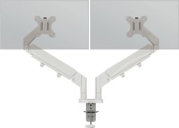 Ten uchwyt na monitory został stworzony z myślą o ograniczonych przestrzeniach roboczych. Jego konstrukcja pozwala na zaoszczędzenie cennej powierzchni biurka, co jest szczególnie ważne w biurach o małej przestrzeni. Dzięki stabilnej budowie, uchwyt utrzymuje monitory w każdej pozycji, co zwiększa komfort pracy.