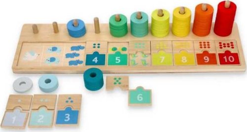 Najlepszą formą edukacji jest nauka przez zabawę. Dzięki tej układance dziecko przyswoi cyfry i liczby w zakresie od 1 do 10 w przyjazny sposób.
