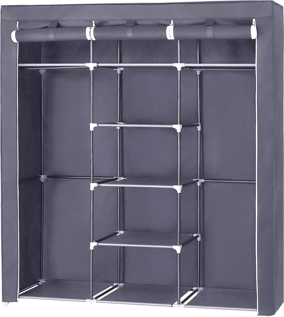 Wyjątkowo praktyczna, składana garderoba, posiada 9 półek, które zostały wyprodukowane z wodoodpornego materiału oraz 2 drążki do zawieszania ubrań.