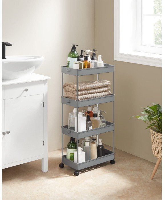 Rewelacyjna mobilna szafka na kółkach idealna do łazienki, kuchni, spiżarni. Szafka została stworzona tak, aby maksymalnie zagospodarować wąskie przestrzenie. Dzięki niej zyskujemy dodatkową przestrzeń, pomaga nam również utrzymać porządek w domu.