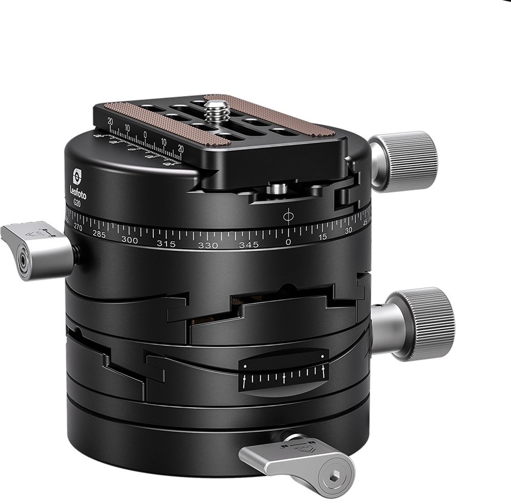 Głowica G20 wyróżnia się innowacyjnym systemem 3D zębatej regulacji, który pozwala na precyzyjne kontrolowanie nachylenia (tilt), obrotu (roll) oraz panoramowania (yaw). Każda oś może być regulowana indywidualnie, co jest szczególnie przydatne w fotografii panoramicznej oraz architektonicznej, gdzie precyzja jest kluczowa.