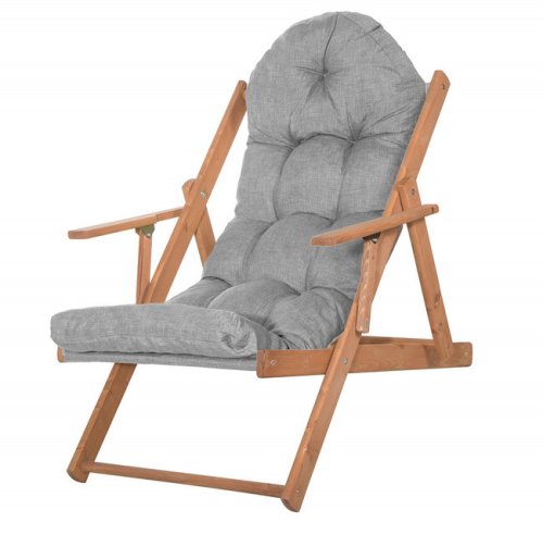 Leżak ogrodowy, drewniany Borneo 3-stopniowa regulacja i poduszka, balkonowy szary UNIWERSALNY