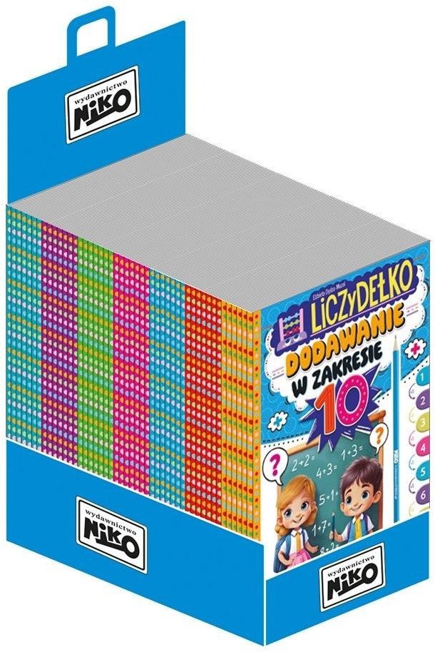 Liczenie w pamięci jest jedną z ważniejszych umiejętności. Zadania z serii "Liczydełko" pozwalają na ćwiczenie rachunku pamięciowego, tempa liczenia, logicznego myślenia, spostrzegawczości i koncentracji. Ciekawe, nieszablonowe zadania bawiąc - uczą. Seria "Liczydełko" jest skierowana do dzieci w wieku od 5 do 10 lat. Składa się z siedmiu części: W sumie 35 książek: *Pakiet sprzedawany jest jako całość, a zwrotowi podlega tylko nienaruszony display Dodawanie w zakresie 10 x 5 sztuk, Odejmowanie w zakresie 10 x 5 sztuk, Dodawanie w zakresie 100 x 5 sztuk, Odejmowanie w zakresie 100 x 5 sztuk, Mnożenie w zakresie 100 x 5 sztuk, Dzielenie w zakresie 100 x 5 sztuk, Miary - długość, waga, pojemność, czas x 5 sztuk