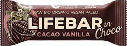 LIFEFOOD BATON Z KAKAO I WANILIĄ W POLEWIE CZEKOLADOWEJ RAW BEZGLUTENOWY BIO 40 g - LIFEFOOD