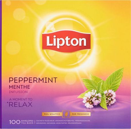 Lipton Classic Peppermint to klasyczna herbata ziołowa, która w 100% składa się z mięty pieprzowej. Jej wyjątkowy aromat i lodowy smak niosą skuteczne orzeźwienie i koją nasze zmysły. Opakowanie 100 kopert z herbatą ziołową Lipton Classic Peppermint idealnie nadaje się do hoteli, restauracji, biur, ale także sprawdzi się w naszych domach.