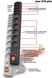 Listwa zasilająca Acar S10 Plus przeciwprzepięciowa 10 gniazd 3 m czarna (W0121)