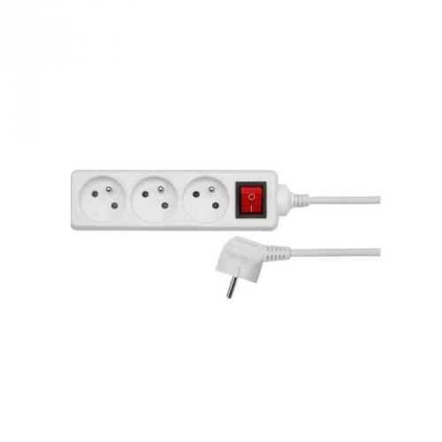 AWTools przedłużacz domowy biały 5 gniazd 3,0m z uziemieniem, wyłącznik (AW24646)