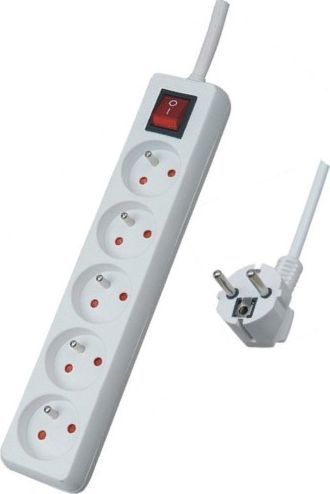 Listwa zasilająca zwykła w kolorze białym z pięcioma gniazdami typu E z uziemieniem.