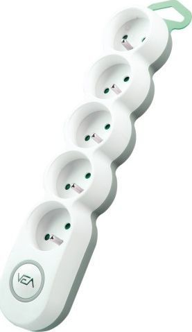 Listwa zasilająca zwykła firmy Elektro w kolorze białym z okrągłymi gniazdami typu E z uziemieniem.