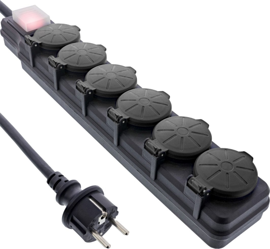 Listwa zasilająca LogiLink InLine® Outdoor-Steckdosenleiste, 6-fach Schutzkontakt, IP44, mit Schalter, 10m