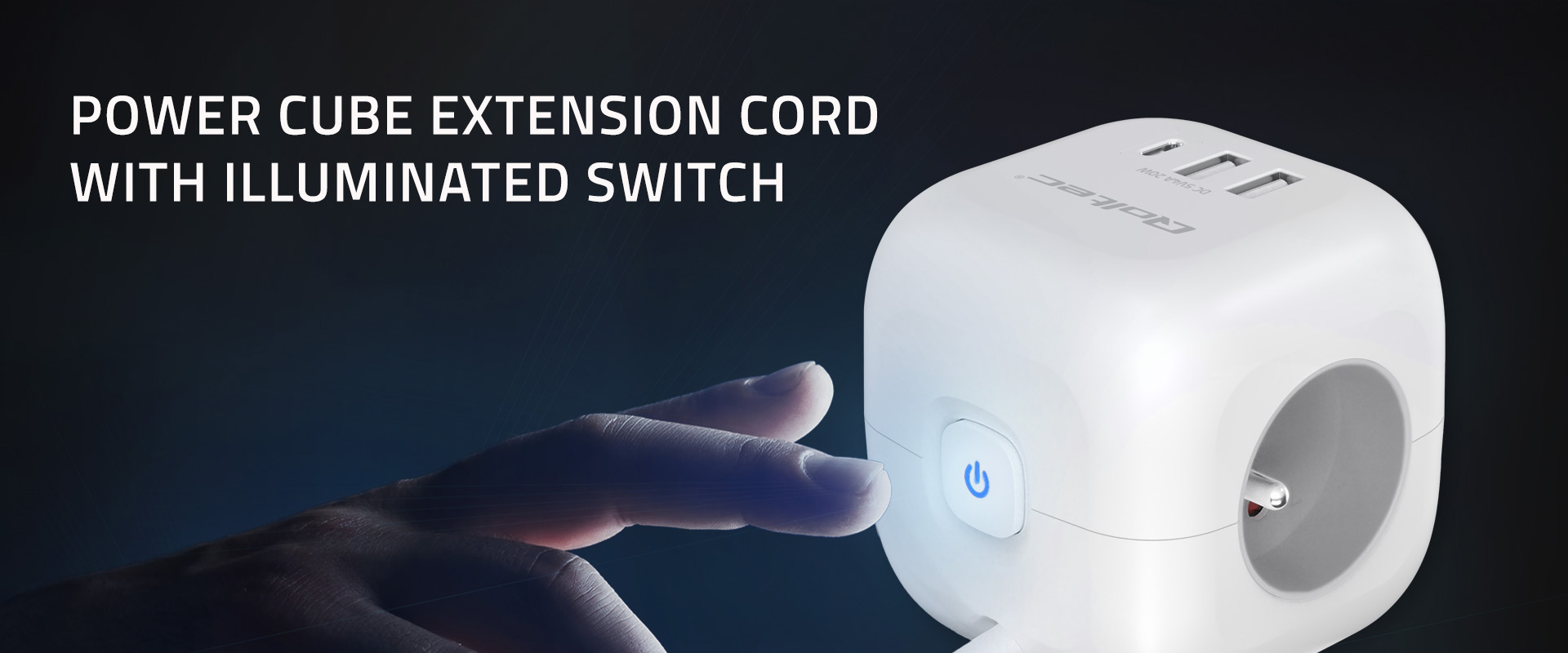 Podświetlany wyłącznik z subtelnym niebieskim światłem informuje o stanie zasilania - jednym kliknięciem możesz odłączyć całą kostkę, co jest nie tylko wygodne, ale i energooszczędne. Pozwala na łatwe i szybkie odłączanie zasilania, a kompaktowa sześcienna forma to nie tylko designerski wygląd, to przede wszystkim praktyczne rozwiązanie, które zapewnia doskonałą organizację przestrzeni. Elegancki design z myślą o Twoim komforcie - bo nawet najprostsze przedmioty mogą być stylowe