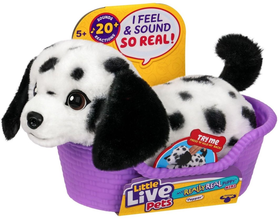 Moose Toys Little Live Pets My Really Real Puppy Mini's - Pepper to uroczy interaktywny piesek-zabawka, który dostarcza dzieciom niezapomnianych chwil radości i zabawy. Ta miniaturowa wersja dalmatyńczyka reaguje na dotyk, wydając przy tym realistyczne dźwięki, co czyni go idealnym towarzyszem dla najmłodszych. Pepper to nie tylko zabawka, ale także sposób na rozwijanie umiejętności społecznych i emocjonalnych dzieci.