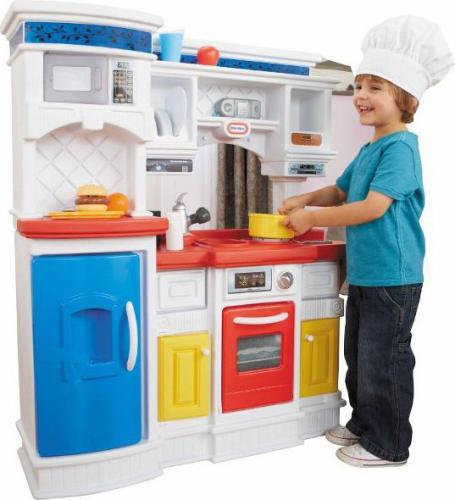 Bardzo nowoczesna kuchnia, która ma wszystko żeby stać się kucharzem. Wyposarzona w rzeczywiste dźwięki gotowania, blaty i urządzenia ze stali nierdzewnej. Cała kuchnia wykonana z tworzywa sztucznego z mikrofalówką, lodówką i piekarnikiem. Cały ten sprzęt z otwieranymi drzwiczkami. Zestaw zawiera 18 akcesoriów.