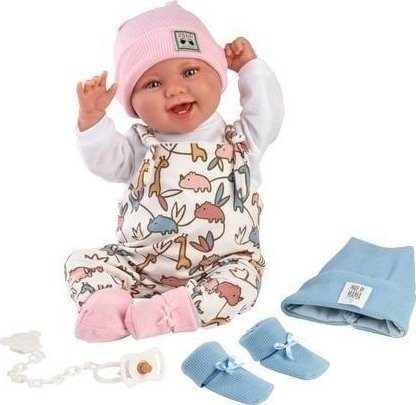Llorens Llorens 18481 Lalka bobas 44 cm Tala/Talo czapki + skarpetki w dwóch kolorach