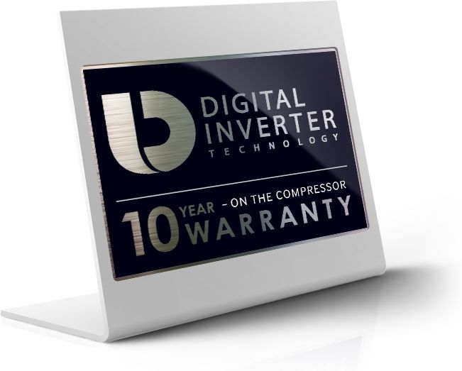 Kompresor Digital Inverter automatycznie dostosowuje swoją prędkość pracy do zapotrzebowania na chłodzenie w oparciu o 7 poziomów. Urządzenie wykorzystuje w ten sposób mniej energii, pracuje ciszej oraz wolniej się zużywa, co przekłada się na jego dłuższą trwałość. Dodatkowo, kompresor objęty jest 10 - letnią gwarancją.
