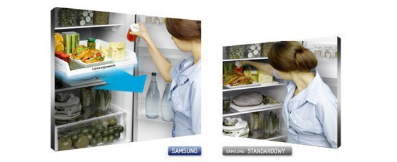 Technologia Samsung True No Frost gwarantuje równomierne rozprowadzanie chłodnego powietrza, tak aby wyeliminować odkładanie się warstw lodu na ściankach urządzeń. Teraz wszystkie łatwo psujące się produkty zachowają świeżość i walory odżywcze. Ponadto dzięki utrzymywaniu równomiernego rozkładu temperatury funkcja True No Frost zmniejsza obciążenie agregatów, zwiększając ich trwałość.