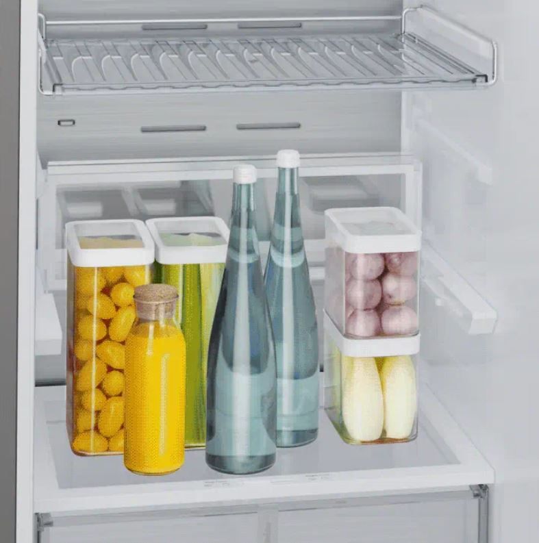 Przechowywanie nigdy nie było tak łatwe! Teraz możliwości układania pojemników w drzwiach lodówki są jeszcze większe. Nowe półki zaprojektowano tak, by swobodnie można było na nich ustawiać produkty o różnych kształtach i wielkości.