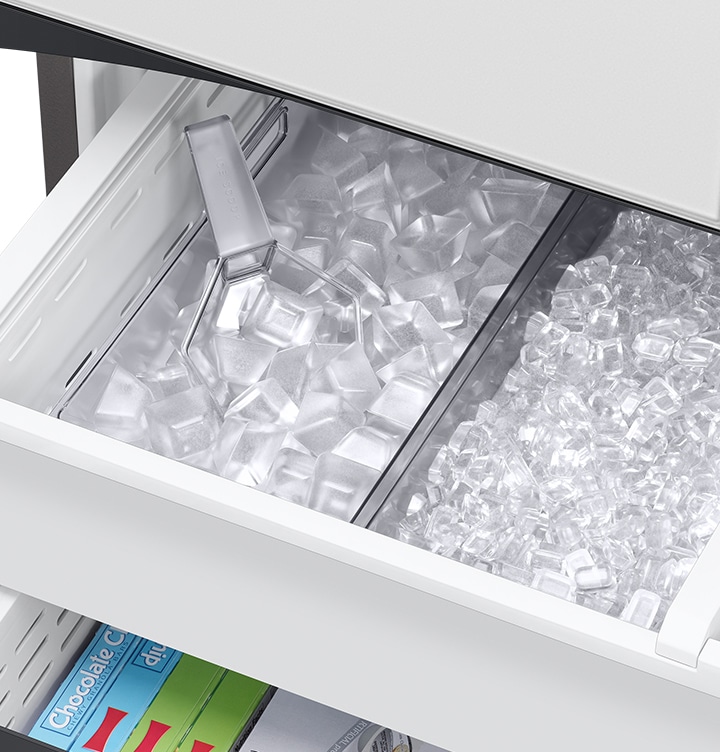 Upewnij się, że jesteś przygotowany na każdą okazję dzięki dwóm różnym rodzajom lodu. Dual Auto Ice Maker wytwarza zarówno lód w kostkach, jak i kostki lodu, które znacznie szybciej schładzają napoje.