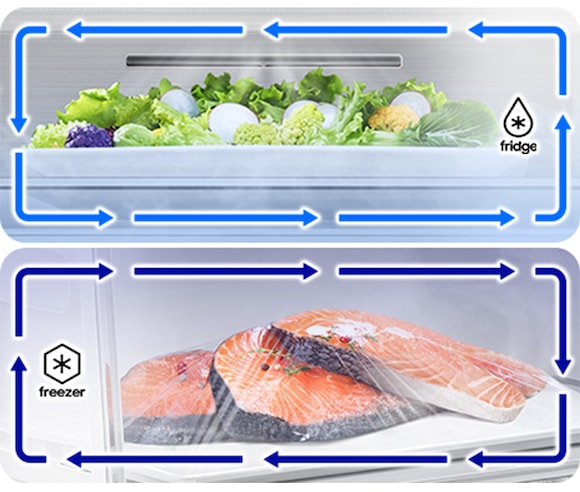 Twin Cooling Plus™ optymalizuje temperaturę i wilgotność w chłodziarce wykorzystując niezależne chłodzenie w każdej komorze. Przechowuje owoce i warzywa w najlepszych warunkach oraz chroni ich naturalny smak, zapobiegając mieszaniu się zapachów.