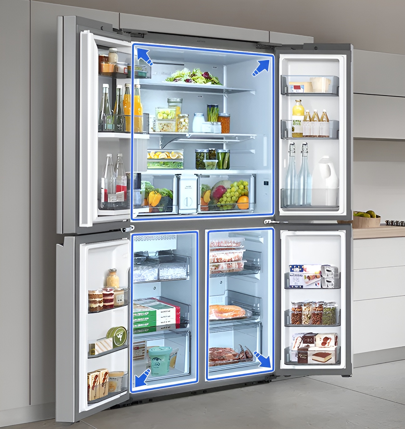 Technologia CoolSelect+ to strefa z możliwością konwersji, która pozwala na dostosowanie dolnej prawej komory urządzenia do Twoich aktualnych potrzeb. Możesz łatwo przekształcić zamrażalnik w chłodziarkę lub odwrotnie, wybierając spośród czterech różnych ustawień temperatury. Ta niezwykła elastyczność jest idealna, gdy potrzebujesz dodatkowego miejsca chłodzącego na specjalne okazje, takie jak święta czy imprezy.