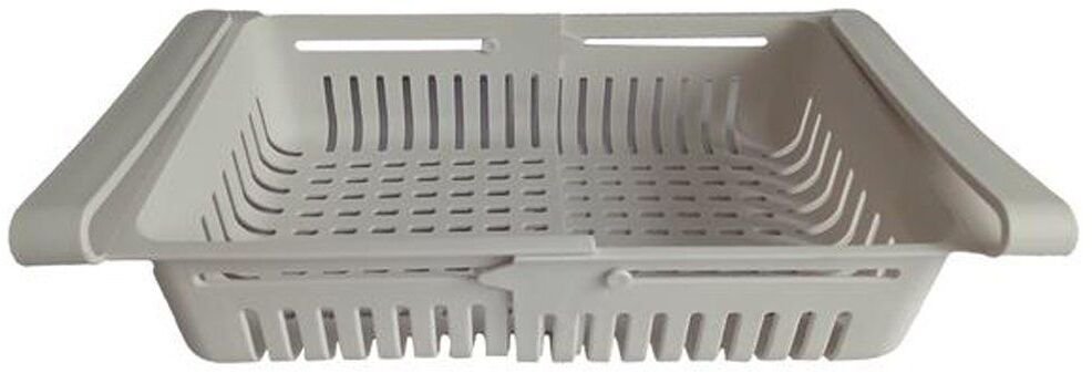 Ten wysuwany organizator do lodówki łączy w sobie funkcjonalność i wygodę. Jego rozszerzalna konstrukcja pozwala na dostosowanie szerokości od 20,5 cm do 28,5 cm, co sprawia, że idealnie pasuje do różnych przestrzeni w lodówce. Dzięki temu możesz przechowywać zarówno mniejsze, jak i większe produkty bez obaw o ich uszkodzenie.