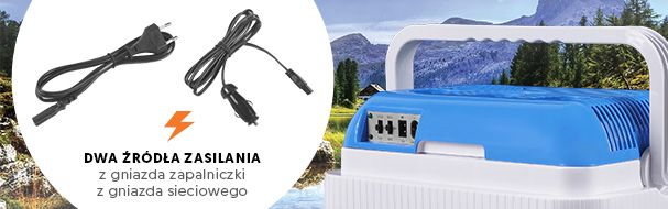 Lodówka została wyposażona nie w jedno, lecz w dwa niezależne źródła zasilania. Urządzenie możesz zasilać z samochodowego gniazda zapalniczki lub bezpośrednio z gniazda sieciowego. Dzięki temu lodówki można używać bez problemu w samochodzie, na kempingu, ognisku, w domu — gdziekolwiek zechcesz.