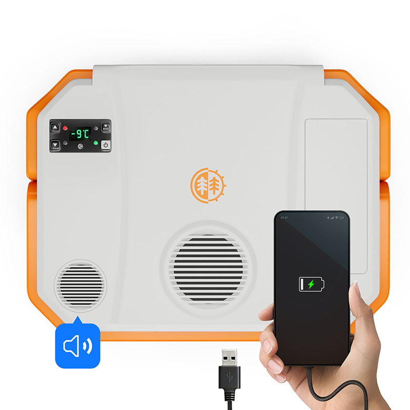 Wbudowane głośniki Bluetooth pozwalają cieszyć się ulubioną muzyką bez potrzeby zabierania dodatkowego sprzętu. Wystarczy połączyć smartfon z lodówką, aby stworzyć przyjemną atmosferę podczas biwaku, pikniku czy relaksu na plaży.