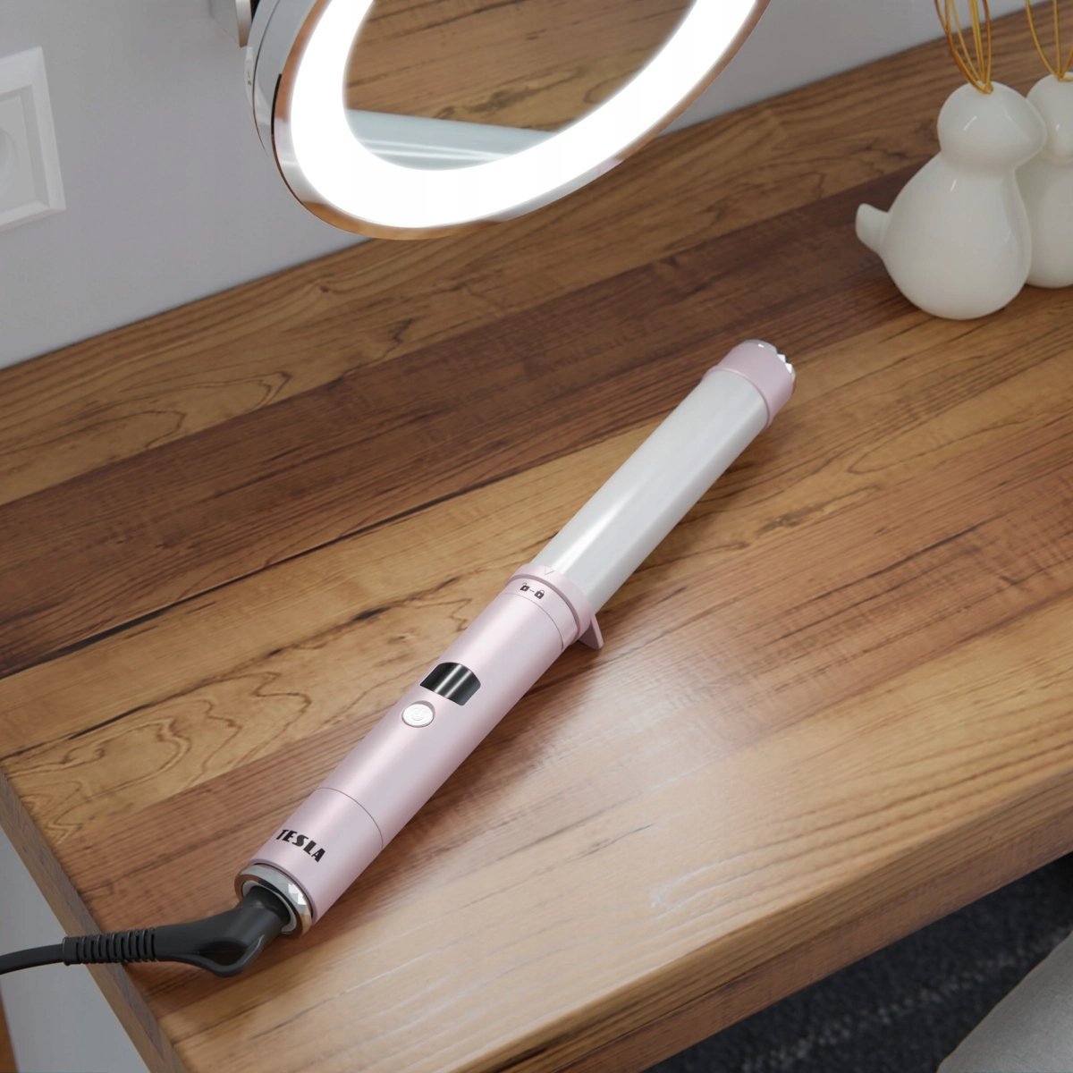 Lokówka do włosów TESLA o mocy 55 W to skuteczne narzędzie do stylizacji włosów. Błyskawicznie stylizuje pasma. Wystarczy owinąć pasmo włosów wokół lokówki, która utrzyma je w żądanym kształcie w ciągu 5-8 sekund.