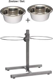 Regulowany stojak z miskami. Miski wykonane ze stali nierdzewnej nadają się do mycia w zmywarce.