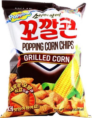 Puszyste, lekkie jak piórko, wybornie chrupkie chipsy kukurydziane marki Lotte w wariancie Grilled Corn. Popping, znane też pod nazwą Kkokkalcorn mają formę trójkątnych poduszek, oprószonych słodko-słoną przyprawą BBQ na bazie sosu sojowego, oregano, rozmarynu i oleożywicy paprykowej. Dodatek prażonej mąki kukurydzianej nadaje im głębszego smaku oraz delikatnie dymnego aromatu.