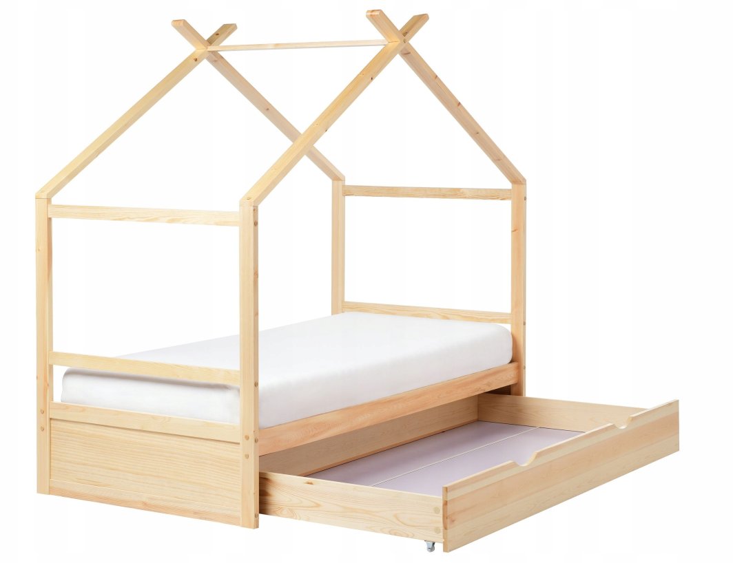 Łóżko dziecięce Domek ORGEVAL to znakomite rozwiązanie do każdego pokoju dziecięcego. Jego wyjątkowy design w formie domku pobudza wyobraźnię malucha, sprawiając, że czas snu staje się prawdziwą przyjemnością. Dzięki solidnej konstrukcji z drewna sosnowego, łóżko nie tylko prezentuje się estetycznie, ale również zapewnia trwałość na długie lata.