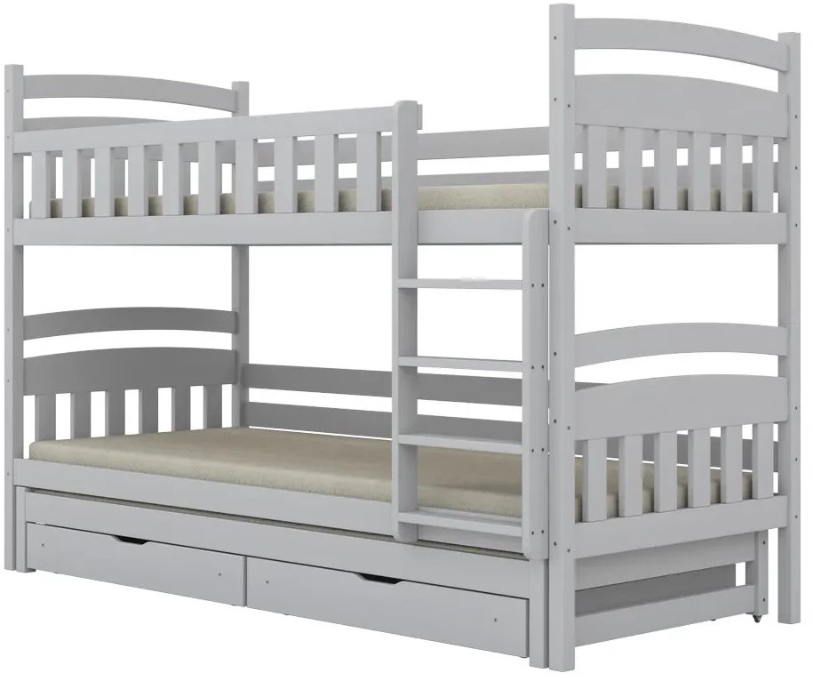 Łóżko piętrowe JULITA 200x90 białe drewniane trzyosobowe z szufladami KOCOT KIDS
