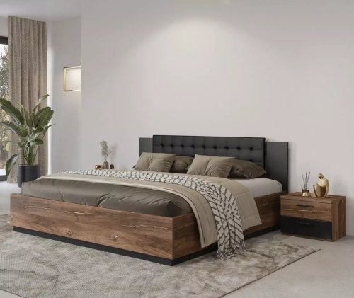 Łóżko dostępne jest w kolorze dąb flagstaff z czarnym matowym wykończeniem, co sprawia, że łatwo wkomponuje się w różne aranżacje wnętrz. Stonowana kolorystyka sprawia, że mebel pasuje zarówno do nowoczesnych, jak i klasycznych sypialni.