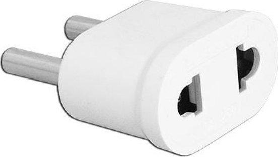 Adapter podróżny - przejściówka z gniazdem typu A, z wtykiem typu C. Umożliwia podłączenie urządzeń elektrycznych korzystających z amerykańskiego systemu gniazd sieciowych. Wtyczka pasuje do gniazd z uziemieniem i bez uziemienia.