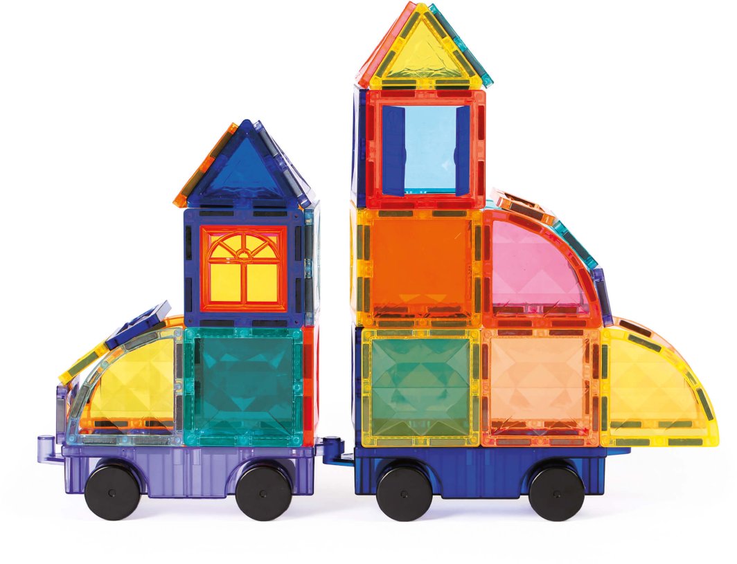 W skład zestawu wchodzi 63 kolorowe i przezroczyste elementy magnetyczne, w tym kwadraty, ćwiartki okręgów, prostokąty, trójkąty, okna oraz podstawy pojazdów. Dzięki tym elementom, dzieci mają szansę na konstruowanie różnorodnych pojazdów, takich jak samochody, pociągi czy rakiety, co staje się ekscytującym wyzwaniem dla ich wyobraźni.