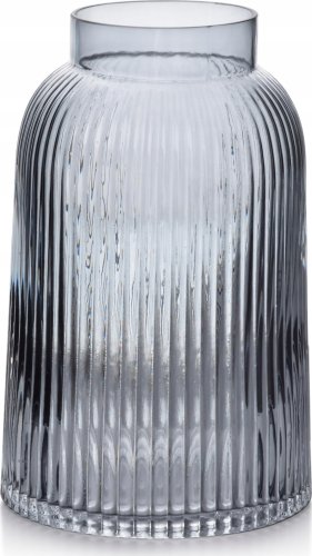 Wykonany w szarym kolorze z delikatnym tłoczeniem w pionowe paski. W dzisiejszych czasach wazon nie tylko służy do przechowywania kwiatów, ale także pełni funkcję dekoracyjną. Świeże cięte lub sztuczne kwiaty sprawiają, że wnętrze staje się bardziej przyjemne i w niektórych przypadkach mogą wpływać na nasze samopoczucie. Kwiaty zawsze są dobrym pomysłem na prezent, a wręczone razem z wazonem na pewno przyniosą wiele radości.