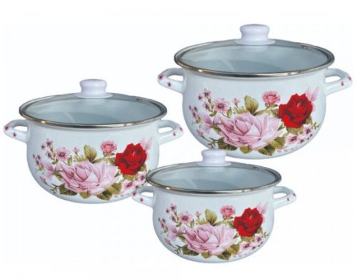 Lumarko Wysokiej jakości wytrzymały emaliowany stalowy zestaw garnków do sosów 5R54518E3G Rosberg 5R54518E3G (3800237045198)