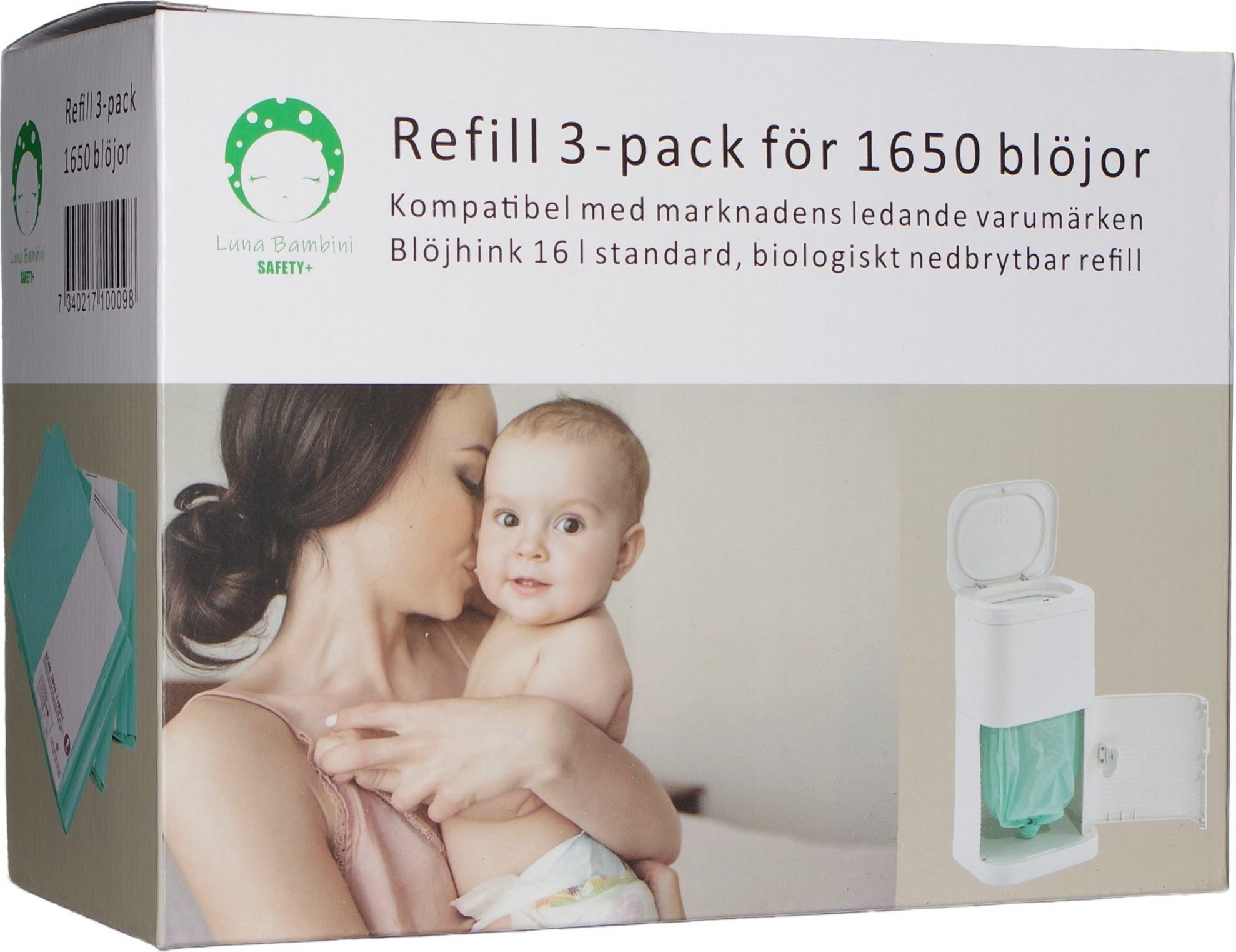Refill Wkłady do kosza na pieluszki 16L, 3 sztuki. Pomieszczą 1650 pieluch. Lekko pachną, powstrzymują wydobywanie się zapachów z kosza. Mocne i biodegradowalne.