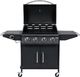 Profesjonalny grill gazowy 4+1 do przygotowywania potraw na świeżym powietrzu, z wygodną regulacją pozwalającą na idealne wypieczenie potraw. Wyposażony w 4 palniki główne i 1boczny o łącznej mocy 16kW. Półki boczne oraz pojemna, zamykana szafka ułatwią przechowywanie przypraw i niezbędnych akcesoriów