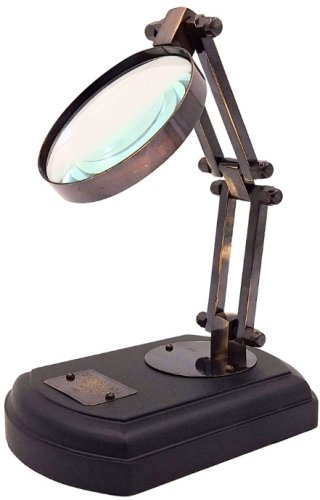 Lupa na drewnianej podstawie z możliwością regulacji – MFS312/4Elegancka lupa wolnostojąca w stylu retro, nie tylko ozdobi, ale i wspomoże wzrok! Możliwość regulacji – Wysokość 20cm.Informacje podstawowe: Średnica szkła powiększającego: 10 cmWysokość maksymalna przy szkle ustawionym poziomo: 20 cm Wymiary podstawy: 13 x 9,5 cmPowiększenie: 3,5x Podstawa drewnianaObudowa i ramię mosiężne