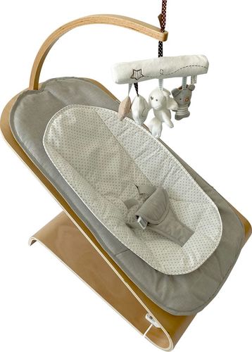 Dodatkowym atutem leżaczka Reece jest oczywiście jego nowoczesne i atrakcyjne wzornictwo w skandynawskim wydaniu. Minimalistyczny styl, w jakim został wykonany, świetnie komponuje się zarówno z wnętrzami nowoczesnymi, jak i klasycznymi. Z pewnością spodoba się rodzicom, którzy cenią sobie proste formy. Ogromnie dużo uroku dodaje mu drewniana konstrukcja, która świetnie współgra z pastelową kolorystyką pozostałych elementów – pokrowcem i pałąkiem z pluszowymi zabawkami.